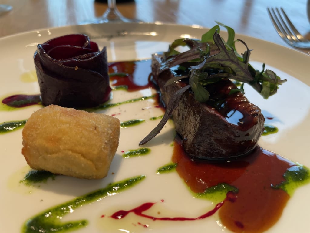 メインは「北海道産 蝦夷鹿のロティ 菊芋のクロケット」。メインってあまり期待してないんだけど、これはとても美味しかった。月並みな感想だけど、火入れが素晴らしく、野性味のあるクセがたまらない。